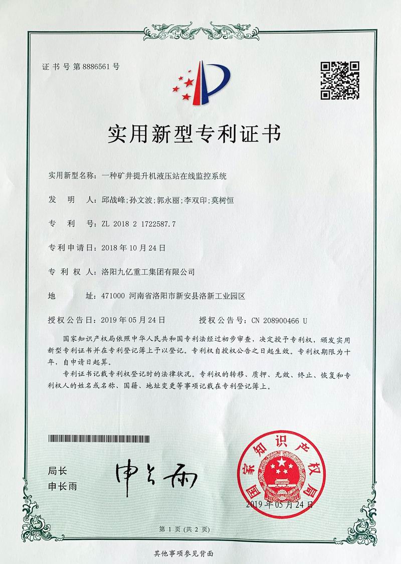 一種礦井提升機(jī)液壓站在線監(jiān)控系統(tǒng)證書(shū)